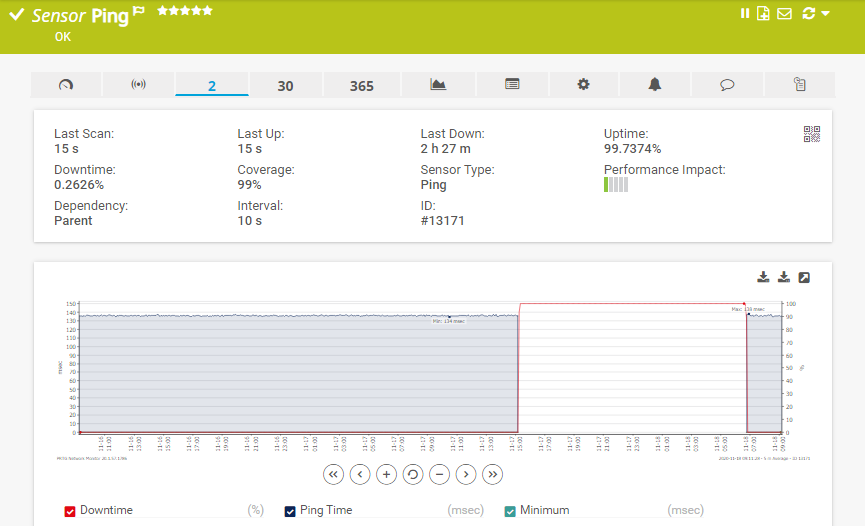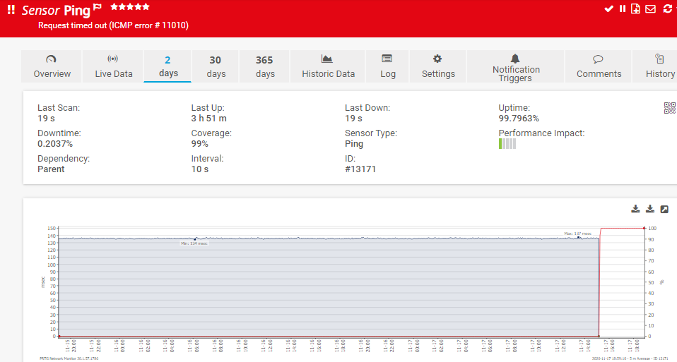 | XSTRA’s own PRTG monitoring system confirms the outage window | |