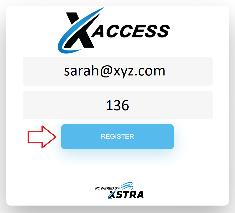 - To register, the User clicks on this link https://xaccess.x.direct and selects the “REGISTER” option at the bottom of the page