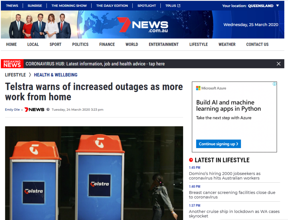 As per announcements overnight interconnect links between carriers are strained due to the rapid scale of these increases attributed to the COVID-19 coronavirus. We will continue to provide updates on capacity expansions. Unfortunately, we are unable to provide an ETR at this stage.